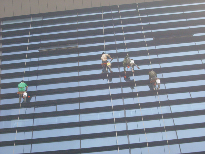 高空作業(yè)人員均具備專業(yè)知識和豐富的高空作業(yè)經(jīng)驗,施工過程中外墻繩及安全繩等有作業(yè)人員自行調(diào)節(jié),遇到不便于自行解決的問題及時用對講機通知現(xiàn)場施工負(fù)責(zé)人員,由負(fù)責(zé)人與工作人員或發(fā)包方現(xiàn)場負(fù)責(zé)人協(xié)商解決,以免耽誤工程進(jìn)度。