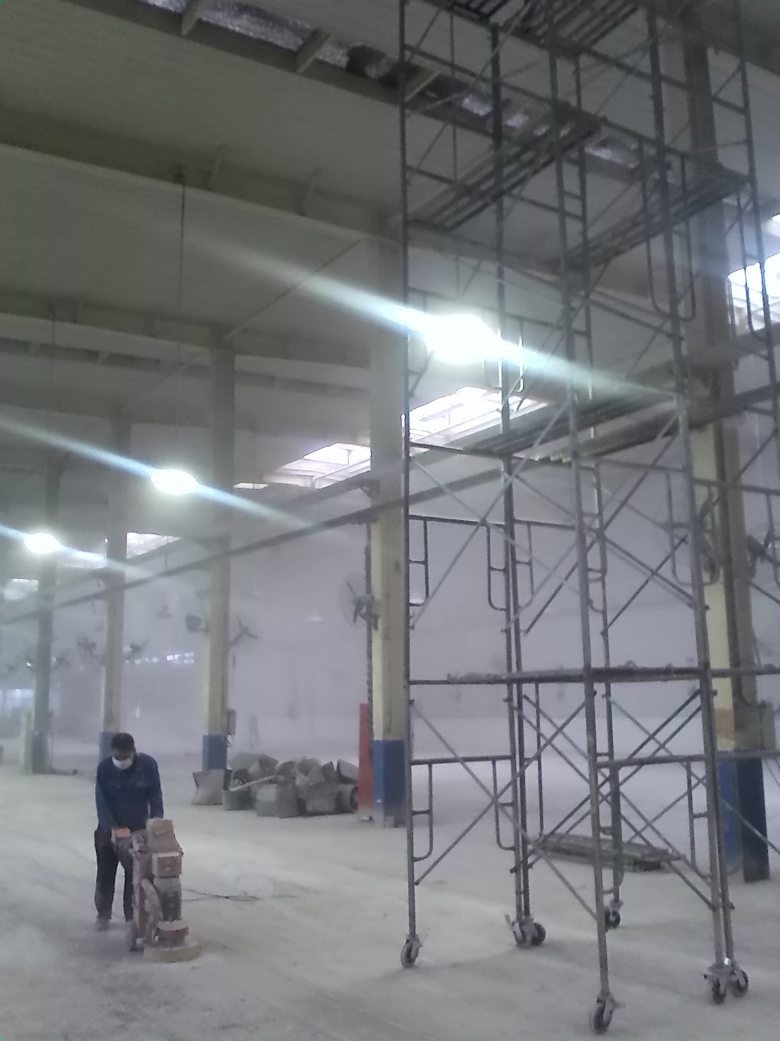 2、確保地面無污漬油漬前提下,轉(zhuǎn)用專用地面靜電推塵并使用防靜電清潔劑,按車間順序用防靜電清潔劑逐一清潔環(huán)氧地坪地墊,確保地面干凈無塵無污漬;