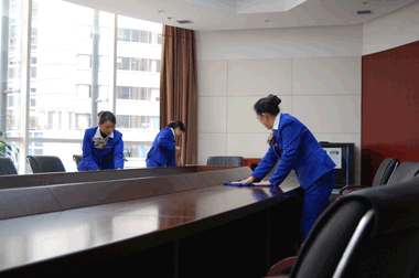 辦公室會議室由于辦公時間長,辦公人員較多,辦公設(shè)施設(shè)備及辦公桌面臺面文件、工具、文案、廢紙垃圾較多,辦公室內(nèi)保潔托管保潔難度受時間地點等因素制約,因此辦公室內(nèi)保潔工作時間主要集中于辦公時間之前或辦公時間之后全面進行,保潔阿姨從事保潔的時間與集中保潔處理通常是在辦公室內(nèi)無辦公人員時進行保潔作業(yè).